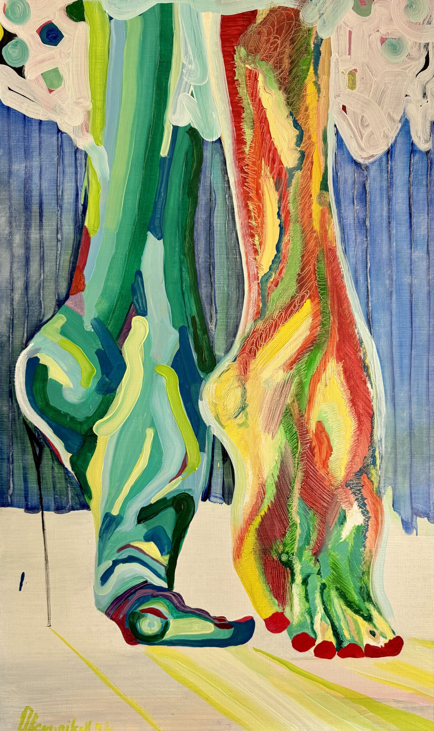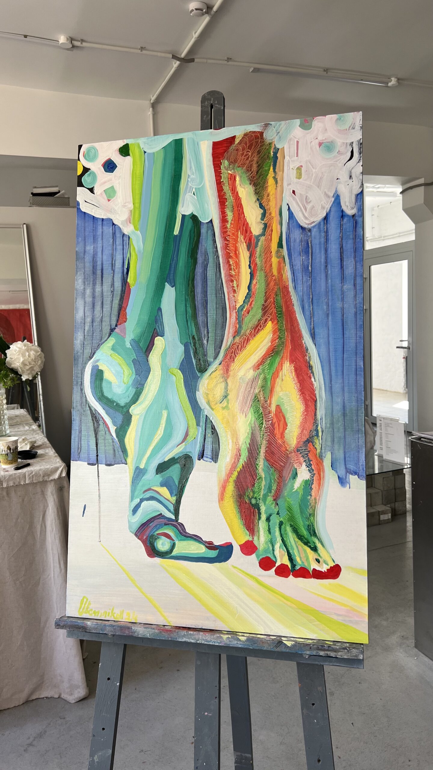 Ovsyannikov’s color palette is striking, bold, and undeniably emotional. He uses vivid, unexpected hues to elevate the emotional weight of his pieces, seamlessly shifting from high-energy tones to more subdued shades. Every color choice is intentional, designed to grab the viewer’s attention and evoke deep reflection.