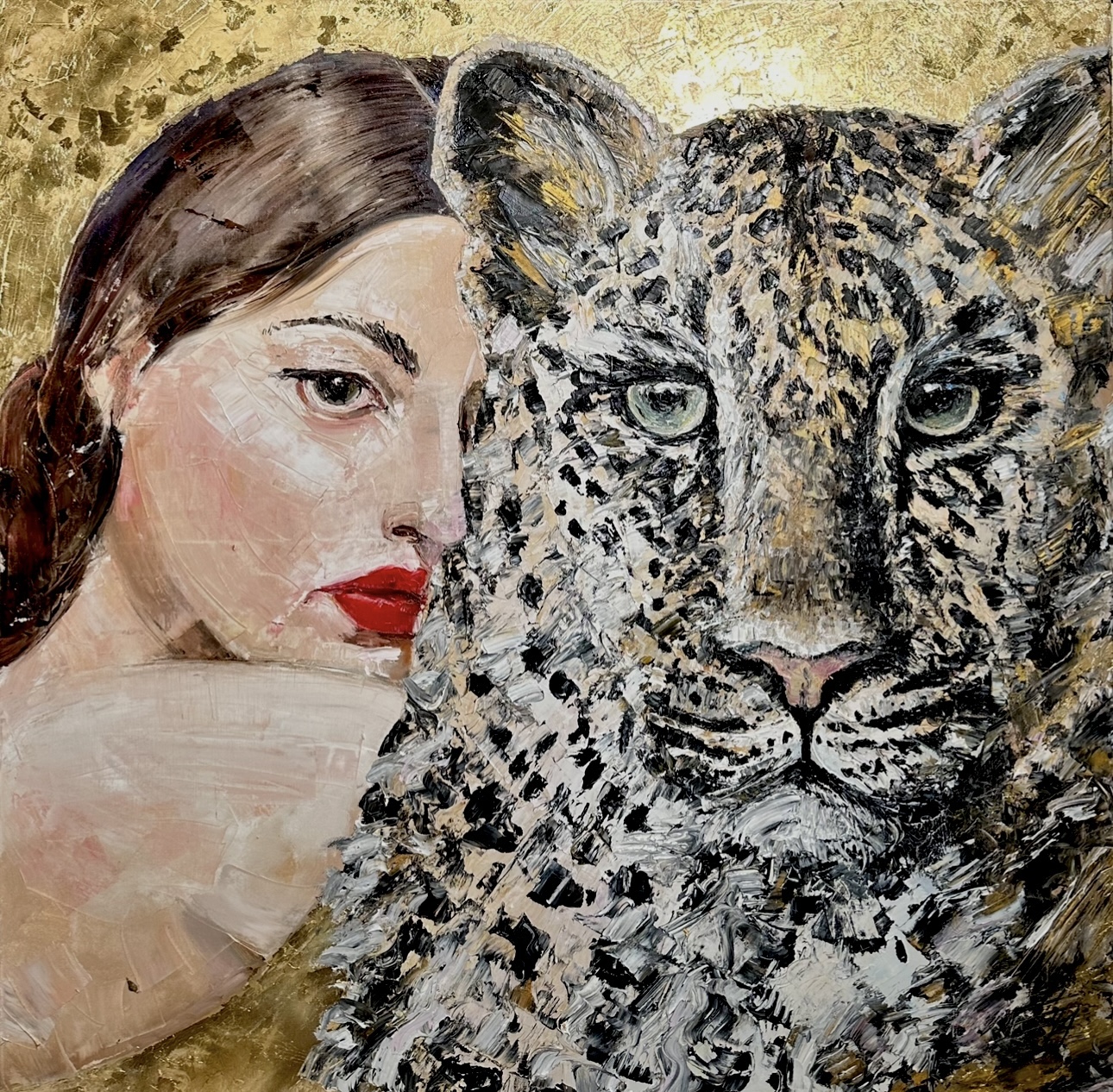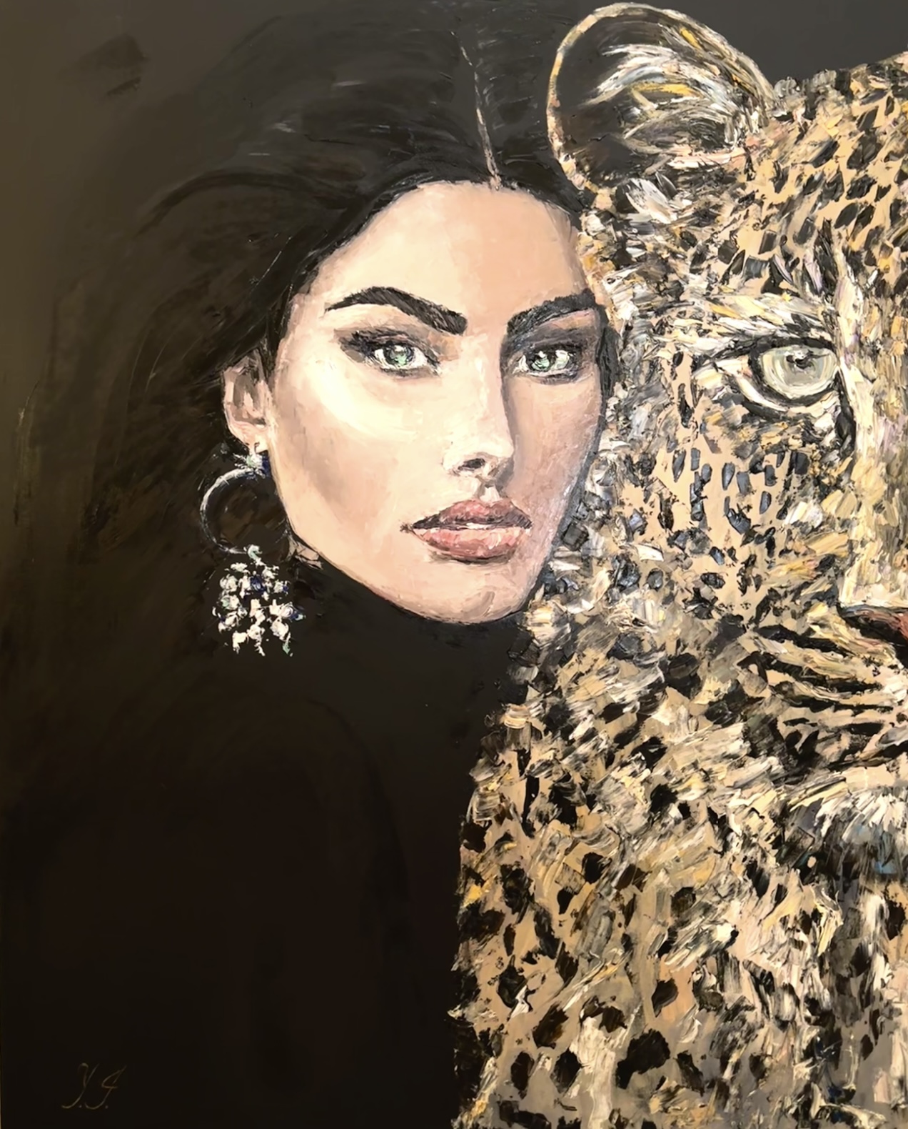 Viktoria is a master of oil painting, employing a variety of styles to captivate and engage her audience. Her distinctive use of the palette knife adds texture and dynamism to each piece, while the incorporation of gold and silver leaf metals imparts a unique three-dimensional quality and a luxurious finish. These techniques allow her to transcend conventional artistic boundaries, creating vibrant, textured works rich in color and symbolic meaning.