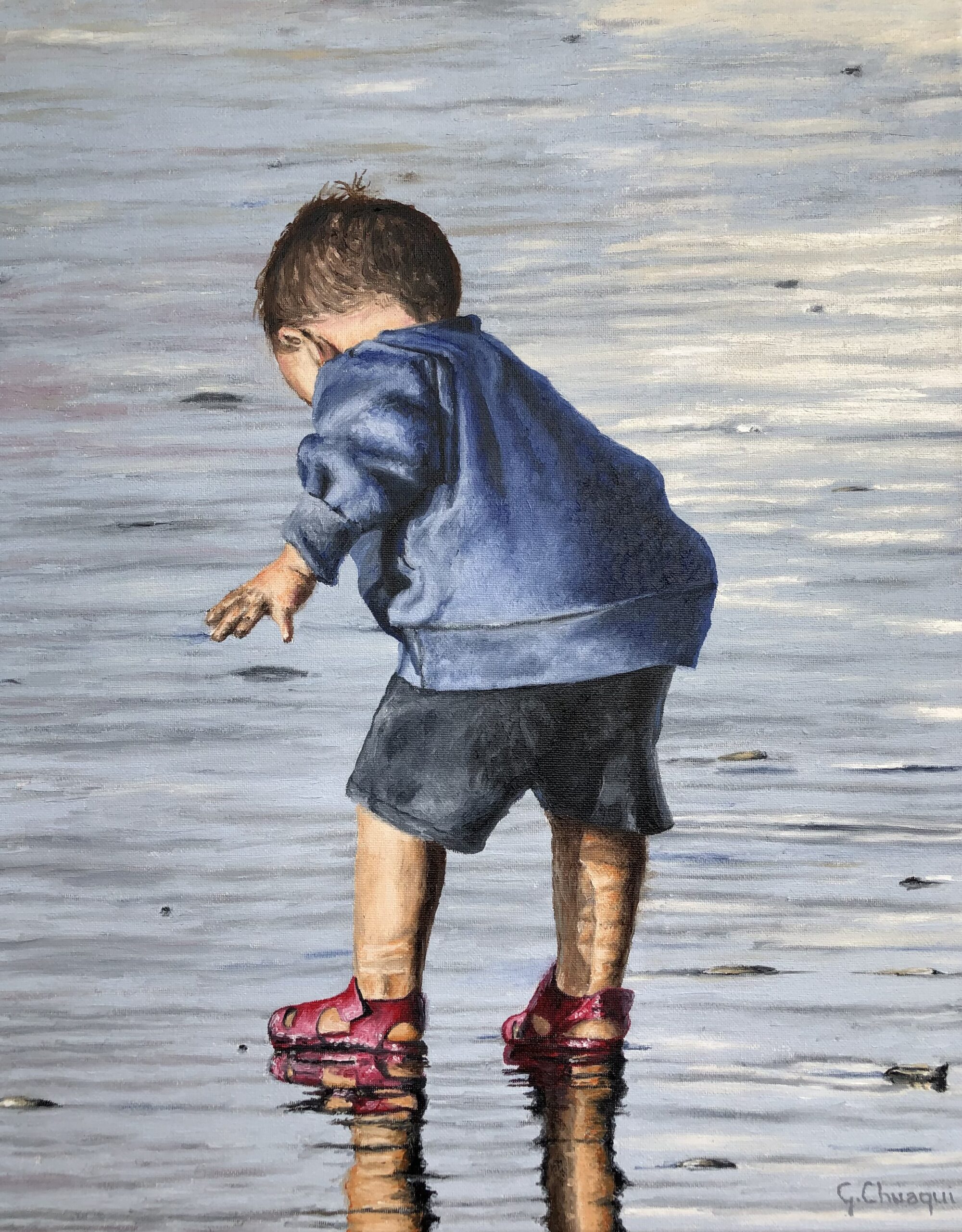 Chuaqui’s paintings often depict ordinary, yet profound, moments—capturing the delicate beauty of life and its fleeting nature. His work is not just about representation but about inviting viewers to connect with the essence of his subjects, evoking a sense of warmth, tranquility, and contemplation. The artist’s approach to figurative painting embraces realism while introducing elements of the surreal, encouraging viewers to question their own perceptions of time, existence, and control. Through his compositions, Chuaqui explores themes of life’s fragility and the beauty that emerges from the simplest of moments.