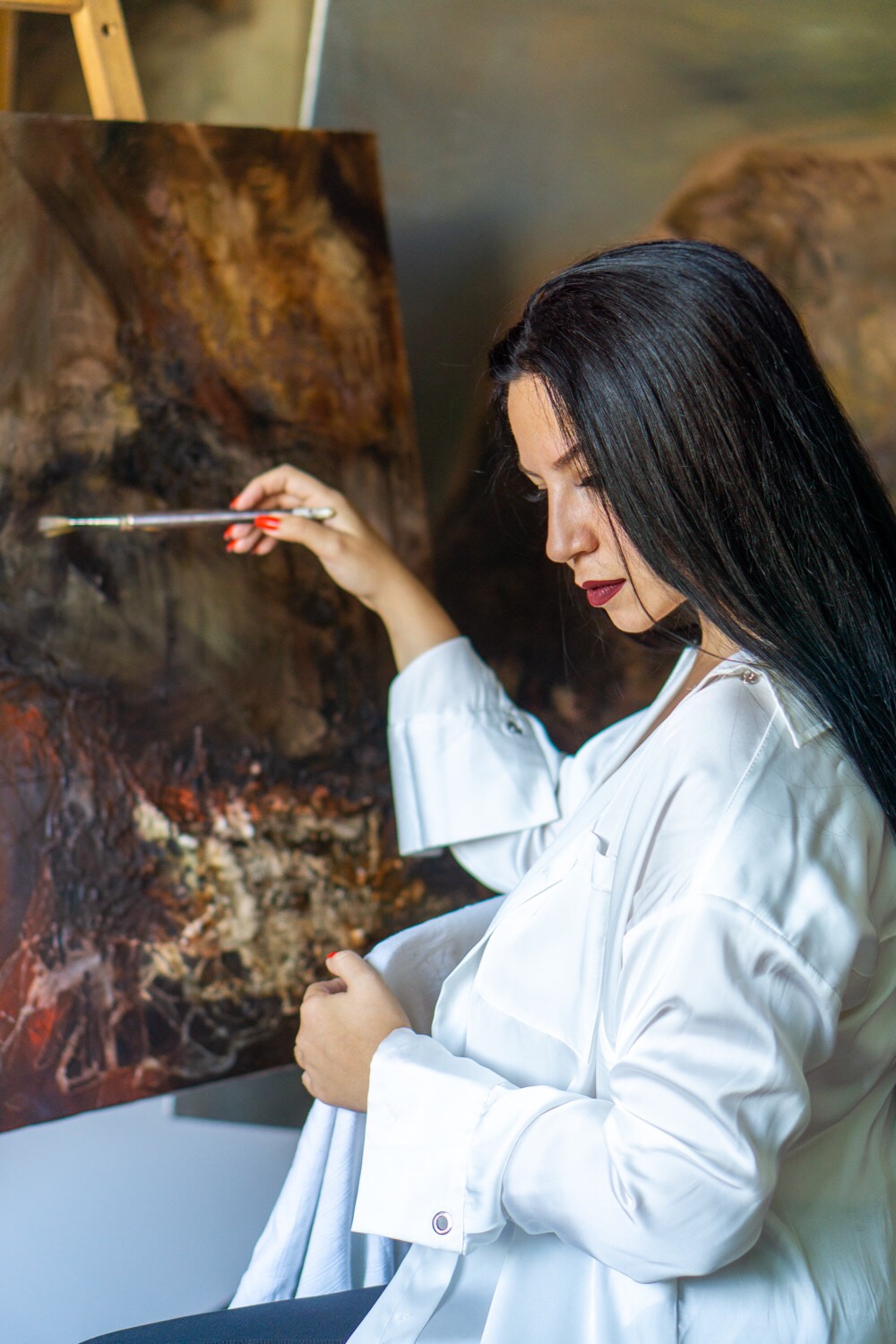 “From the very beginning, the very word composition sounds like a kind of prayer. I used a putty knife to apply strokes and layers on the canvas, thinking about the future composition. Mostly during the process, it became clear to me that the subject was harmful to my paintings.”